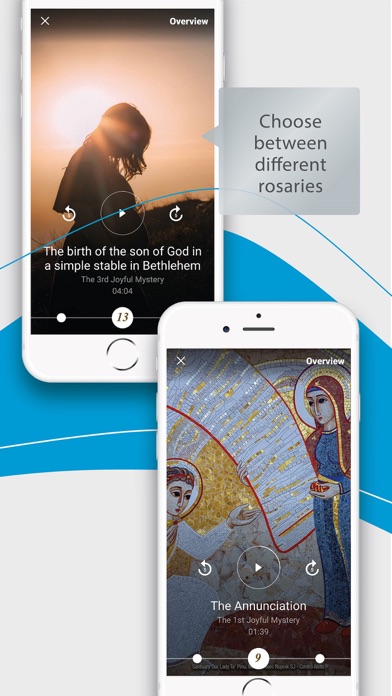 An app to pray the Rosary: - An initiative to pray for the challenges of the world and the mission of the Church. - A pedagogy to learn how to pray the Rosary. - A diversity of topics such as Standard Rosary and Crisis & Health Rosary. - An audio guide to contemplate and listen to the Gospel.