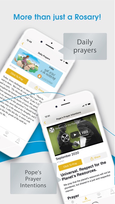 Pope Francis, in recent years, has especially asked young people to pray the rosary for peace in the world. The App Click To Pray eRosary responds to this request by accompanying you to pray for a world that is suffering deeply from its many conflicts, divisions and violence. The Click To Pray eRosary wants to reach out to people of all ages, especially young people who live primarily in digital environments. It is a pedagogical proposal to learn how to pray the rosary.